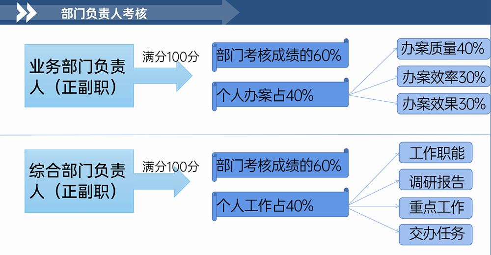 最高檢印發(fā)《關(guān)于開(kāi)展檢察官業(yè)績(jī)考評(píng)工作的若干規(guī)定》,確定檢察官79類(lèi)業(yè)務(wù),160項(xiàng)質(zhì)量指標(biāo)、106項(xiàng)效率指標(biāo)、46項(xiàng)效果指標(biāo),共計(jì)312項(xiàng)考評(píng)指標(biāo)。
