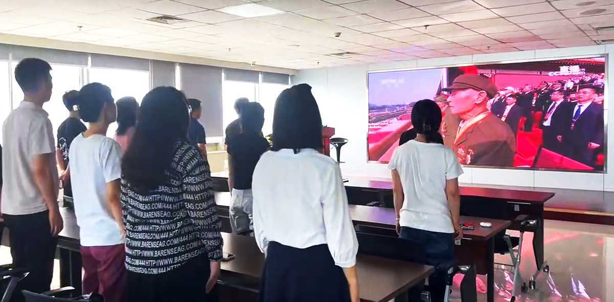 2025年9月3日上午9時許,欣誠信息總部員工在多功能廳集體觀看閱兵儀式。鮮艷的五星紅旗在雄壯的國歌聲中冉冉升起,我們全體起立,齊聲高歌。歌聲鏗鏘有力,飽含著對祖國的無限熱愛與敬意。我們心潮澎湃,熱血沸騰,仿佛能感受到先輩們浴血奮戰的英勇無畏,也更加堅定了為祖國繁榮富強而努力奮斗的決心。